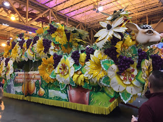This post is to show off the floral decorations on the floats. They are pretty amazing. Some of the "flowers" are recognizable from your garden and some are a little harder to identify!